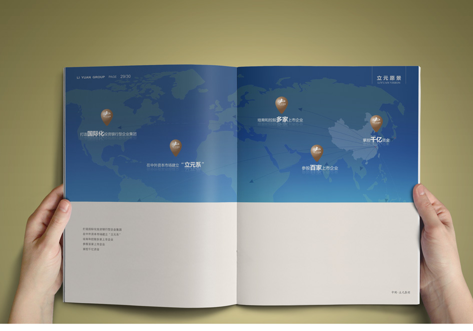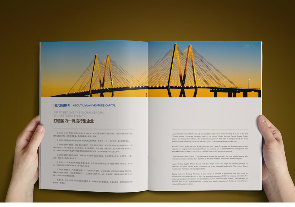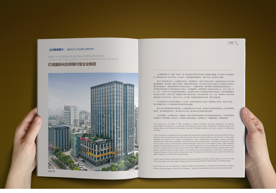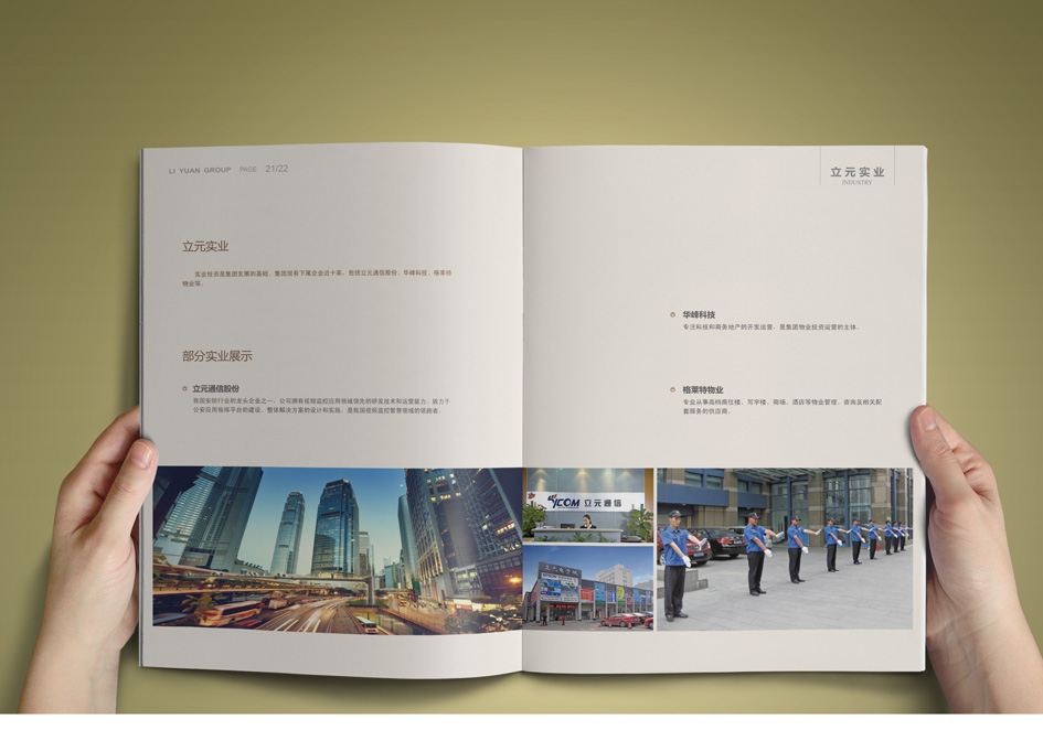 立元集團(tuán)創(chuàng)建于1998年,旗下?lián)碛?0多家控股企業(yè),參股近百家上市、擬上市企業(yè),近千名員工,業(yè)務(wù)涵蓋各類金融投資、房地產(chǎn)開(kāi)發(fā)、電子通信三大板塊。銘陽(yáng)廣告公司先后為其提供集團(tuán)宣傳冊(cè)設(shè)計(jì)、團(tuán)隊(duì)攝影、資本投資畫(huà)冊(cè)設(shè)計(jì)、員工手冊(cè)設(shè)計(jì)制作、物業(yè)公司宣傳設(shè)計(jì)、大型主題會(huì)議設(shè)計(jì)、PPT設(shè)計(jì)等。